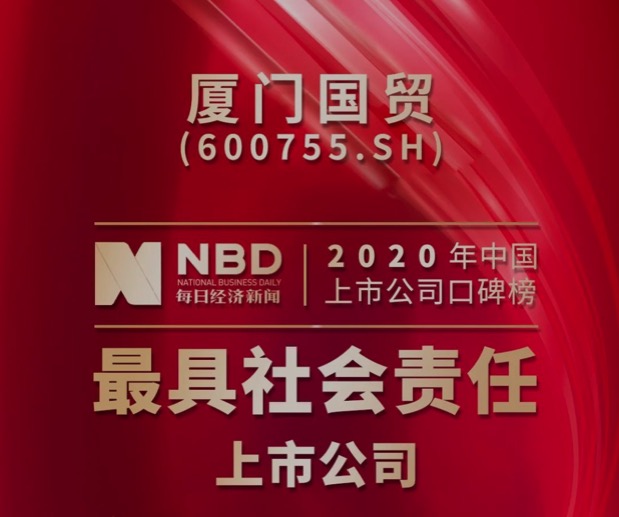 廈門(mén)國(guó)貿(mào)集團(tuán)股份有限公司(廈門(mén)國(guó)貿(mào)600755.SH)憑借優(yōu)秀的企業(yè)價(jià)值觀以及在抗擊疫情、公益扶貧、推動(dòng)行業(yè)發(fā)展等多方面的社會(huì)責(zé)任踐行表現(xiàn),獲得“最具社會(huì)責(zé)任上市公司”稱號(hào)。