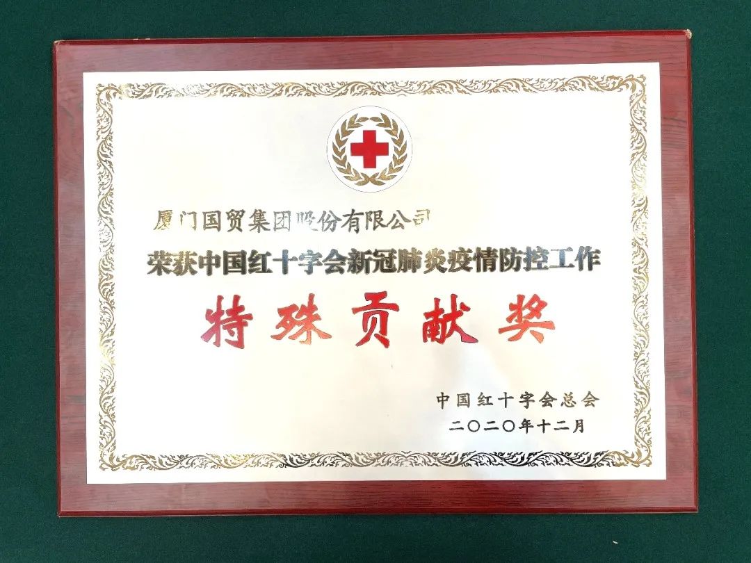 近日,國(guó)貿(mào)股份榮獲中國(guó)紅十字會(huì)總會(huì)頒發(fā)的廈門(mén)市唯一一項(xiàng)中國(guó)紅十字會(huì)新冠肺炎疫情防控工作“特殊貢獻(xiàn)獎(jiǎng)”。