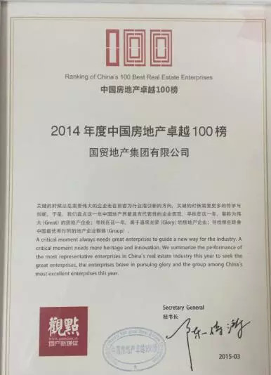 3月26日,2015觀點(diǎn)年度論壇盛大發(fā)布2014年度中國(guó)房地產(chǎn)卓越100榜,國(guó)貿(mào)地產(chǎn)集團(tuán)成功登榜!