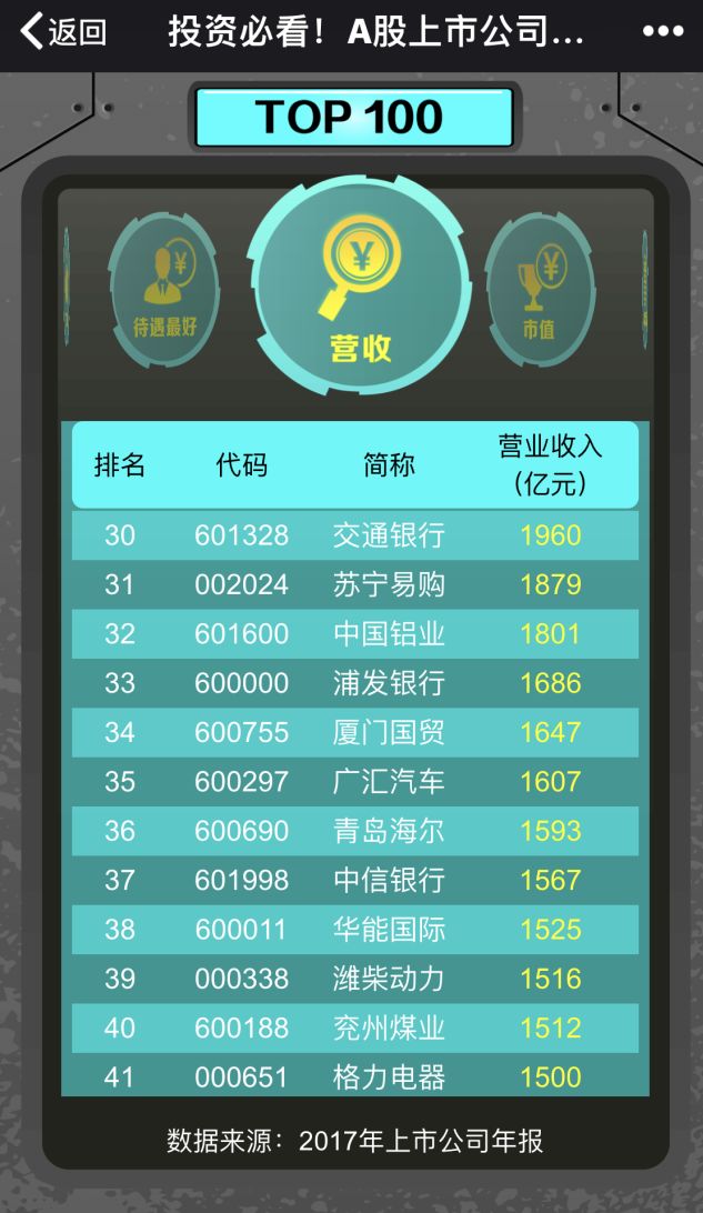 隨著2017年A股上市公司年報披露收官,日前,21世紀經(jīng)濟報道公布A股上市公司百強榜單。在營業(yè)收入TOP100 榜單中,廈門國貿(mào)以1647億元位居第34位,為歷年最好排名。