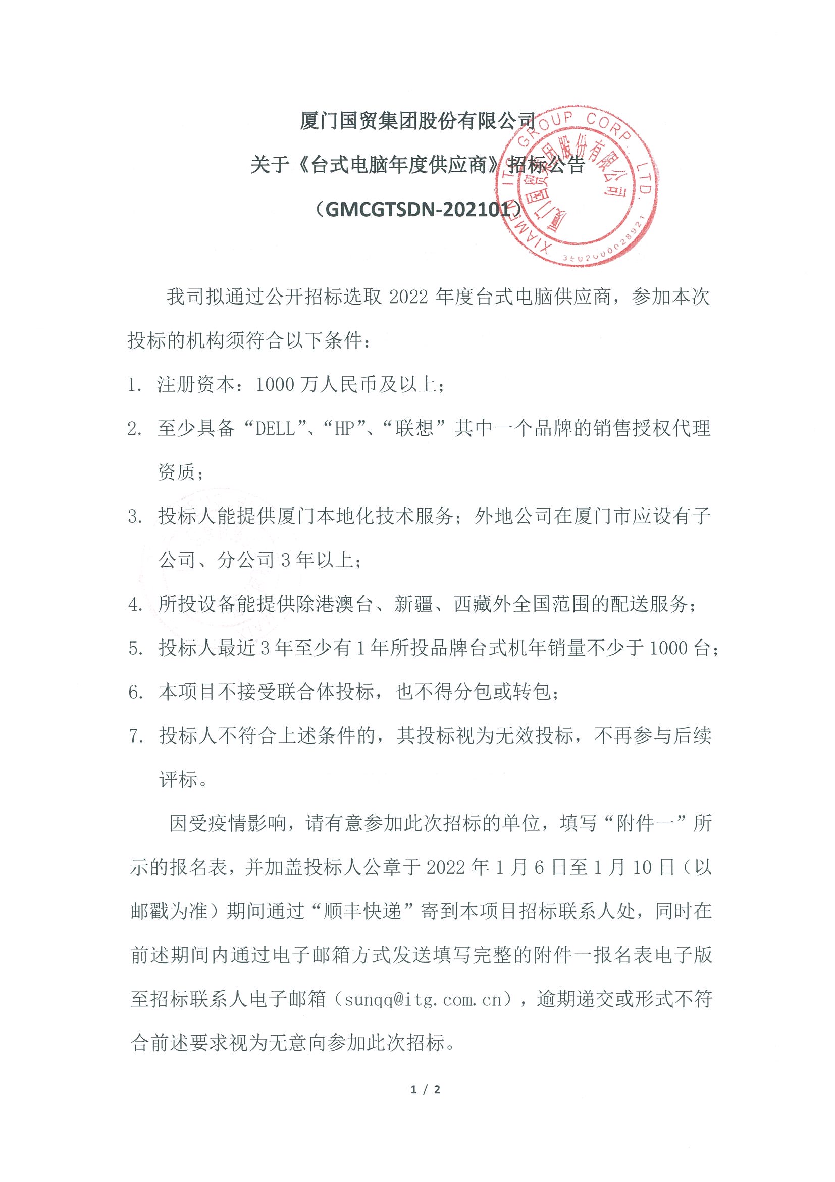 《臺式電腦年度供應(yīng)商》 項目采購招標公告
