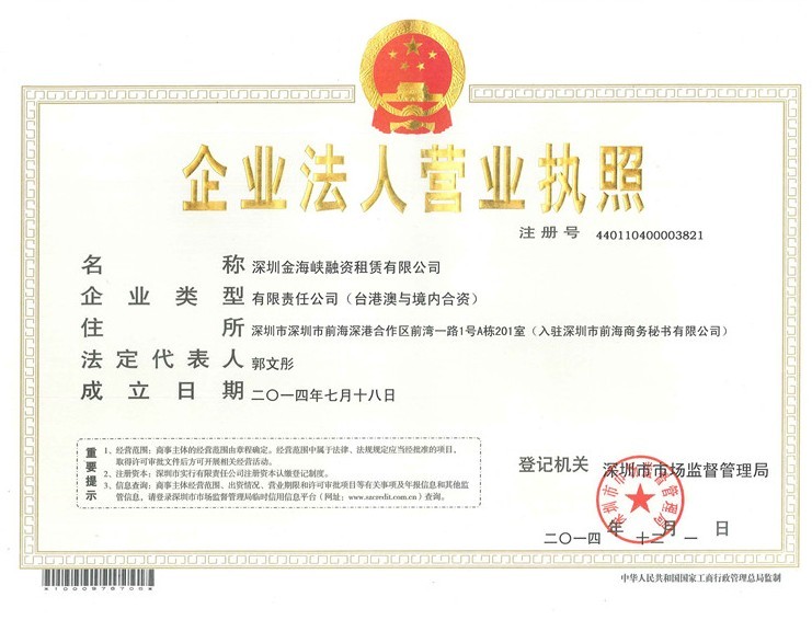 在此背景下,廈門(mén)國(guó)貿(mào)集團(tuán)在金融領(lǐng)域又有新的布局,中小微綜合金融服務(wù)板塊開(kāi)辟新的業(yè)務(wù)。12月1日,深圳金海峽融資租賃有限公司獲準(zhǔn)設(shè)立。