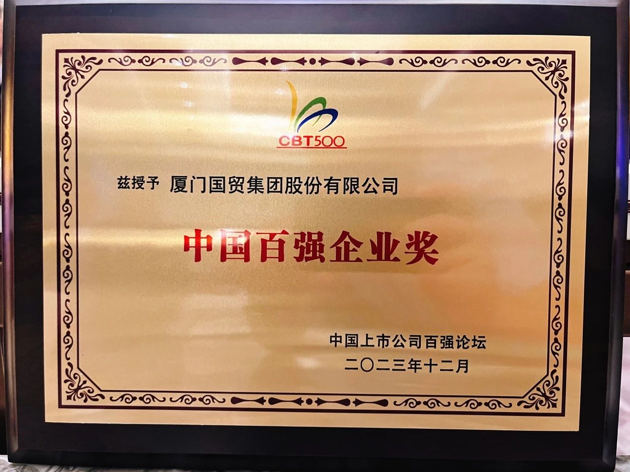 廈門國貿(mào)榮獲“2023年中國上市公司百強企業(yè)獎”。
