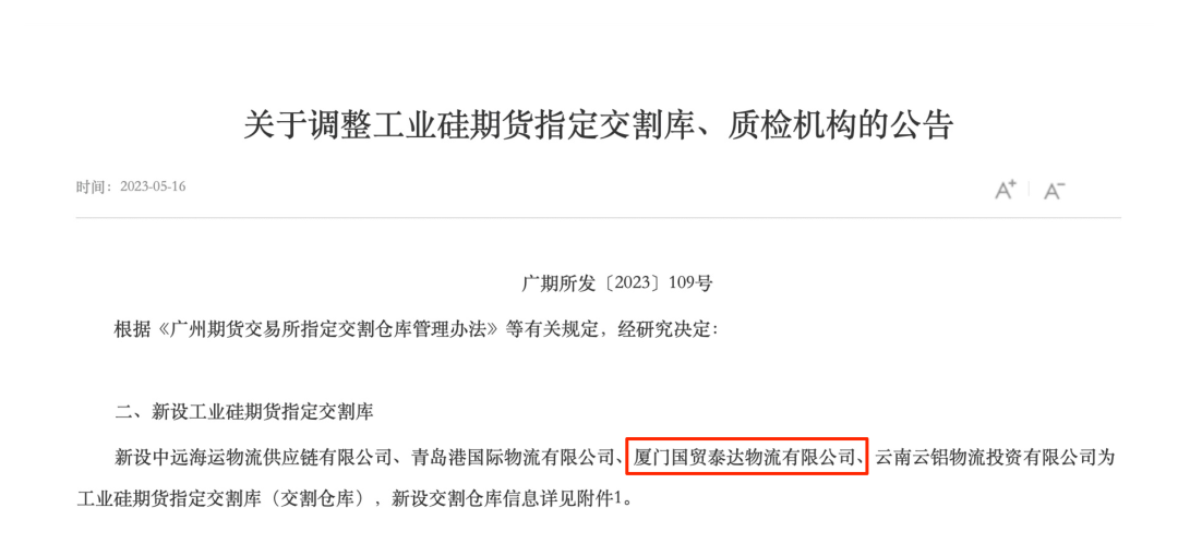 國(guó)貿(mào)股份物流板塊獲批工業(yè)硅期貨指定交割庫資質(zhì)