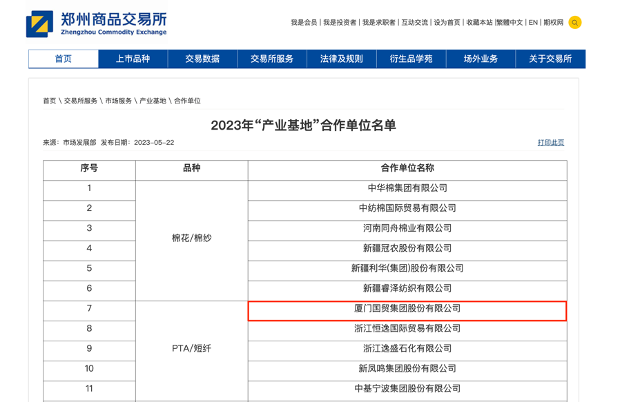 國(guó)貿(mào)股份獲評(píng)鄭商所PTA-短纖板塊“產(chǎn)業(yè)基地”合作單位。