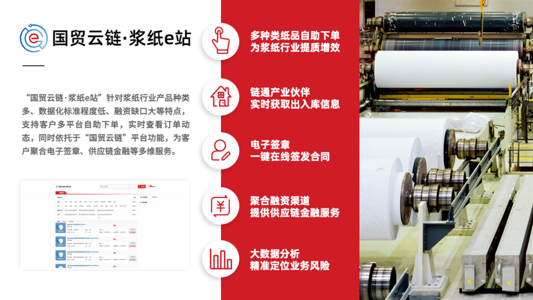 在數(shù)字中國建設(shè)峰會(huì)第三屆國有企業(yè)數(shù)字化轉(zhuǎn)型論壇上,國貿(mào)股份報(bào)送的“國貿(mào)云鏈·漿紙e站”獲評產(chǎn)業(yè)協(xié)同類三等獎(jiǎng)。