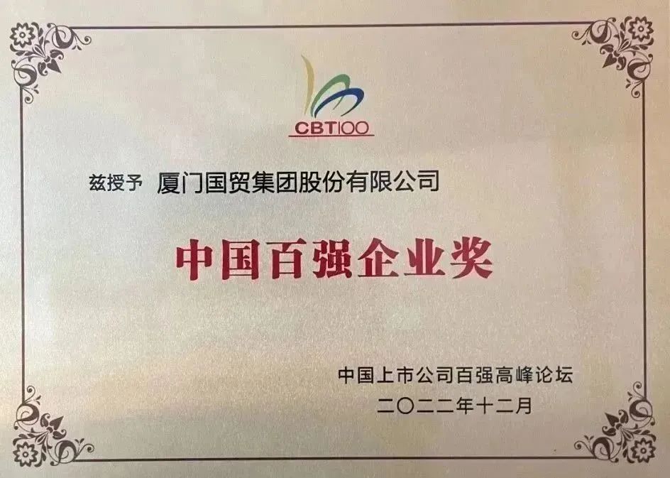 廈門國貿(mào)榮獲“2022年中國上市公司百強企業(yè)獎”
