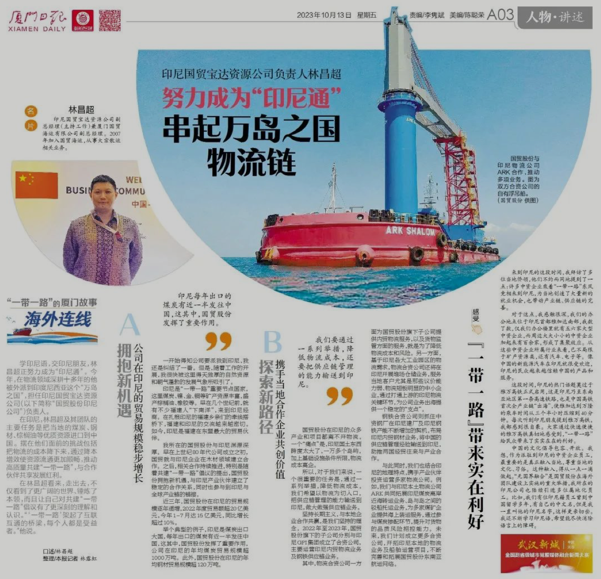 印尼國貿(mào)寶達(dá)資源公司負(fù)責(zé)人林昌超: 努力成為“印尼通” 串起萬島之國物流鏈。