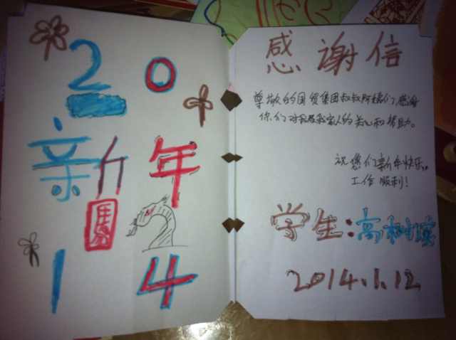 元月12日,在廈門特教學(xué)校2013-2014學(xué)年第一學(xué)期閉學(xué)式上,國貿(mào)股份為30位品學(xué)兼優(yōu)的學(xué)生頒發(fā)了助學(xué)金。受到資助的學(xué)生向公司代表送上了他們親手制作的賀卡和感謝信。